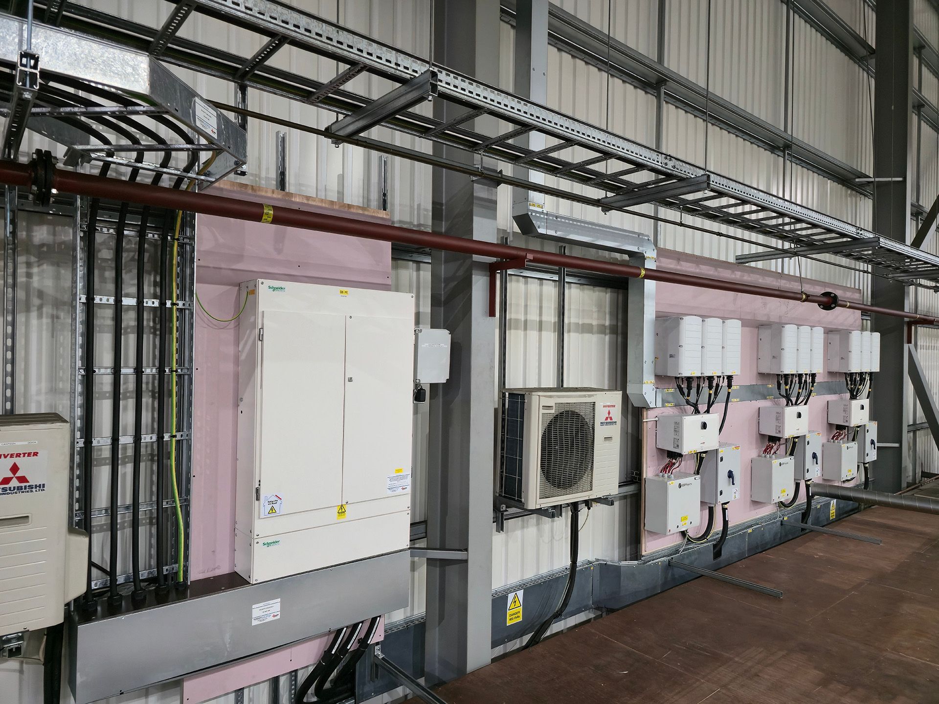 This project involved the installation of a new 630 amp power supply to a 4-way MCCB (Moulded Case Circuit Breaker) panel board. The power supply consists of 200mm single-core SWA (Steel Wire Armoured) cables that were installed on a new ladder rack. All work was completed to provide the necessary power infrastructure for a new solar installation project at a factory.
